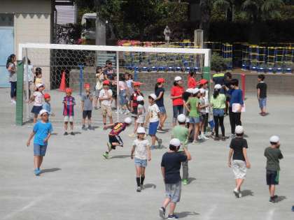 校庭・体育館・教室3種類の場所に12の班が分かれて活動を行いましたが、各班趣向を凝らす様子がうかがえ、1〜6年生全員が楽しそうに遊んでいました。 -