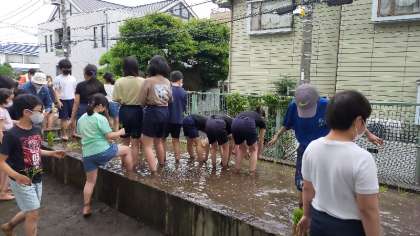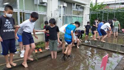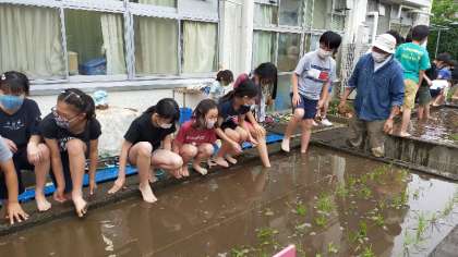 稲を真っ直ぐに植えるのは難しく、農家の方の苦労を感じた子もいました。