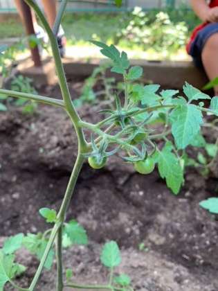 ピーマンは花が咲き、ミニトマトは実がなっていました。