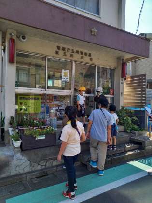 交番、郵便局、駅、図書館など、みんなで使う場所が、学校の周りにはたくさんあることがわかりました。 -