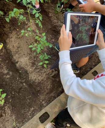どんどん成長する野菜の様子を、タブレットで写真に撮りました。
