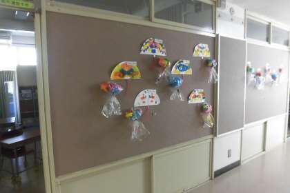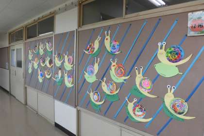 今年は雨の降る日が多いですが、1年生の廊下には可愛いかたつむりがたくさん。