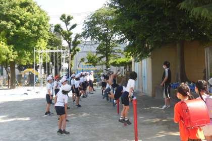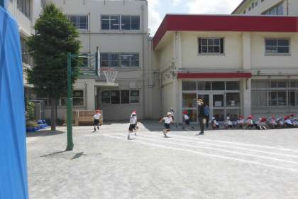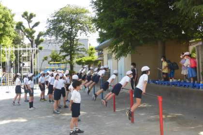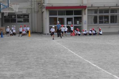 暑くなってきた校庭で1年生の合同体育が行われました。