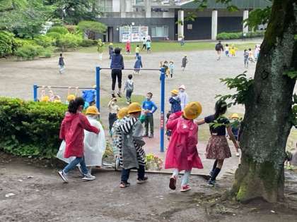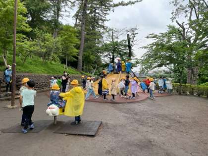たくさん歩いて、雨にも負けず元気に遊びました。