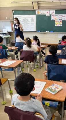 英語で挨拶したり、自己紹介をしたり、音楽も交えて楽しく活動しました。 -