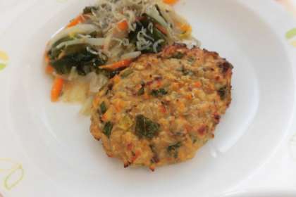 さんが焼きには、しょが・ねぎ・しそ葉が入っていたので、塩分少なめでも美味しく食べられました。