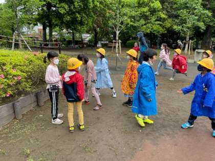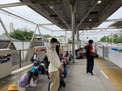 1、2年生で仲良く遊んだ後は、別々の電車で帰るので公園で終わりの会をしました。来てくだった皆さんにお礼の挨拶をして、多摩川の駅に向かいました。初めての電車も、静かにお行事よく乗れた子が多かったです。初のちょっと遠いお出かけ、みんながんばりました。