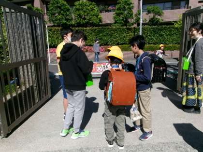 5月24日〜5月26日の間、エコライフ委員会が緑化推進運動の募金を行っています。「緑の募金にご協力おねがいします!」と、校門で、朝、登校してくる児童に元気に声をかけています。自分たちの町である東京都の樹木や植物を守りたいという思いで、活動に取り組んでいるそうです。