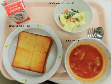 今日は楽しみにしていたはちみつレモントースト給食でした。