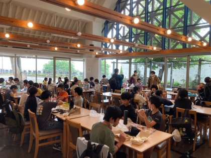教室では、チキン南蛮を食べながら笑顔をたくさん見ることができました。