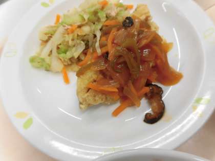 今日は白身魚に野菜をたっぷり使ったタレをかけました。