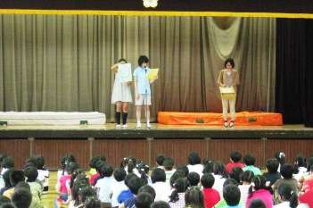 6月22日の全校朝会で図書委員会の人からお知らせがありました。内容は、6月22日から7月3日はあじさい読書週間があります。クイズに2問正解するとしおりがプレゼントされます。読書記録カードの取り組みもあるそうです。1年生、2年生、3年生、わかば、つくしには図書委員さんが読み聞かせに行ってくれるそうです。楽しみですね。
