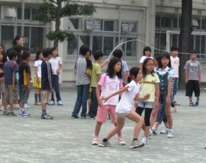 6月19日(金)、今日の高学年の大なわ遊びでは、5分間で何回とべるか数えました。2学期にはもっとたくさんとべるようにみんなで声をかけあって、練習しましょう。