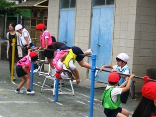 6月17日(水)担任の先生と一緒に大きな声で何回とべたか数えながら、楽しそうにとんでいます。