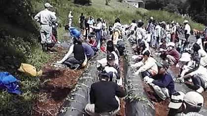 川場村に無事つきました。昼食時に少し雨に降られましたが計画通り進んでいます。写真は歴史民俗資料館見学とサツマイモの苗植えの様子です。