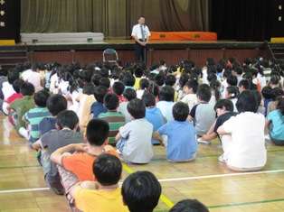 3時間目は4年生、5年生、6年生が、「ハイテク犯罪防止」ということで、インターネットや携帯電話での犯罪に巻き込まれないようにとビデオやお話をしていただきました。