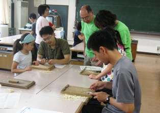 昨年もお世話になった瀧澤さんと今年はもう一人馬場さんに来ていただき、3つの部屋に分かれて竹とんぼを作りました。