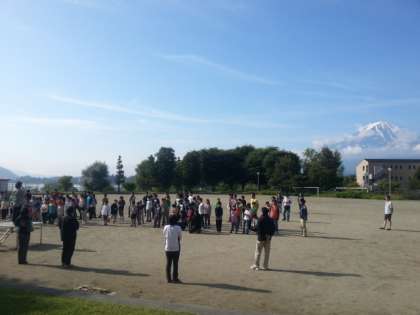 二日目は、朝から富士山が見えました。園庭で、朝の会をしました。2年ぶりに、ハイキングができそうな天気です。