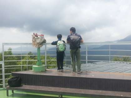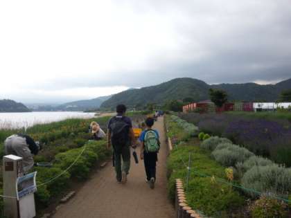 展望台から見た西湖や本栖湖は、とてもきれいでした。途中の道は険しかったけれど、その先で見た景色は最高でした。学園に戻ってから、河口湖沿いのハイキングコースを歩いて、大石公園に行きました。