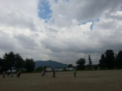 今日から3日間、わかば学級の6年生が、河口湖移動教室に参加します。区内の他校の友達とたくさんの体験活動をして過ごします。先程までの雨も上がり、河口湖が見える学園の庭で、存分に体を動かしています。