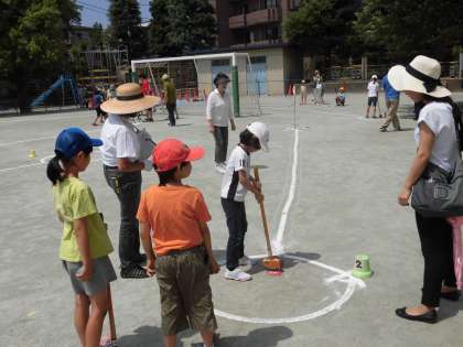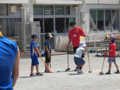 今年度第1回目の奥沢体験楽校は、「グラウンドゴルフを楽しもう!」です。地域の方からご指導をいただき、子どもたちと一緒に、教員も、保護者・地域の方もプレーを楽しみました。この体験楽校は、本校の学校運営委員会が主催しています。普段の生活では楽しめない体験活動の場を、子どもたちに用意してくださっています。 -