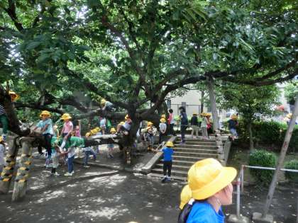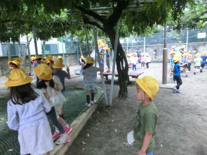 1年生の公園探検2回目です。今回は、東玉川第二公園(わさび公園)と東玉川公園に、に行きました。前回よりも木や花など自然の多い公園だったので、遊具だけでなく草花に触れたり、木登りを楽しんだりしました。わさび公園の花は3年生が植えているのですが、そのことを知ると驚きの声が上がっていました。楽しい公園探検となりました。