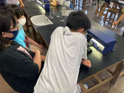 メダカの受精卵の観察にチャレンジしました。初めて使う顕微鏡ですが、みんな上手に使っていました。もうすぐうまれるメダカの姿に子どもたちは大興奮!観察している間にもメダカの赤ちゃんがうまれて、稚魚も観察できました。