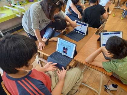 学校に戻ってからは、タブレットで写真を見て振り返りをしました。