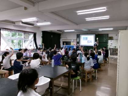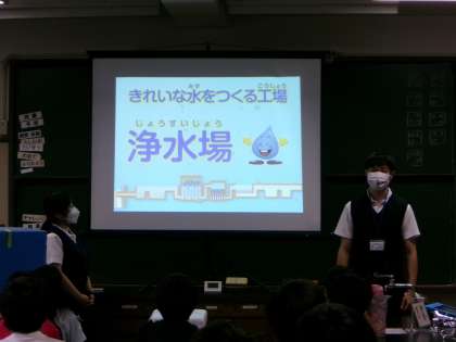 今日は、東京都水道局から水道キャラバンの方々をお招きして、4年生が水について学びました。普段何気なく使っている水がどんな流れをだどっているのか、動画や実験を交えて分かりやすく教えてくださいました。みんな集中してよく話を聞いていました。