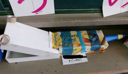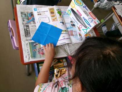 1年生は図工の学習で、思い思いに持ち寄った箱を使って、好きなものを作りました。ワニなどの生き物を作った子もいれば、飾りをたくさんつけて「びっくり箱」を作った子もいて、バラエティに富んだ作品が並びました。