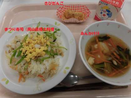 まつりずし(おかやまばらずし)とキビ団子を作りました。