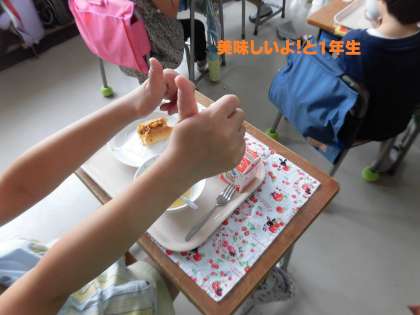 おいしいよと、サインをくれる1年生、おかわりでもめて、少し不機嫌な2年生、「おまけほしい」と言ってくる4年生と、子どもたちの給食時間は、午前中の疲れをリセットする時間のようです。