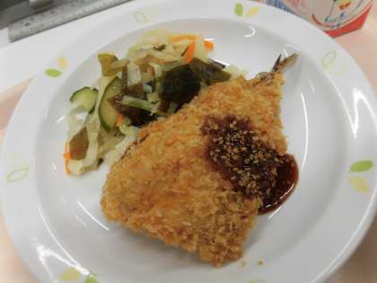 今日は鰯のフライでした。鰯は千葉産で、柔らかくとてもおいしい鰯でした。