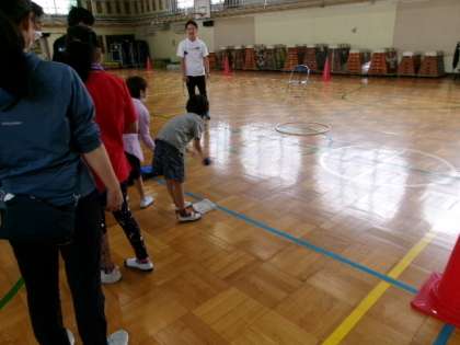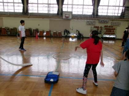 今日は、つくし学級とわかば学級の児童が、ボッチャの先生をゲストティーチャーとしてお招きし、ボッチャ体験を行いました。動画で説明を聞いた後、いよいよ練習と試合です。床に置かれたフラフープをゴールに見立て、ボッチャのボールを投げ入れました。見事、輪の中に入れることができたときには、子どもたちは大喜びしていました。