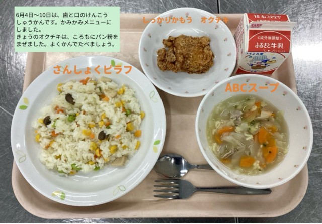 6月4日〜10日は『歯と口の健康週間』です。給食ではかみかみメニューを出します。