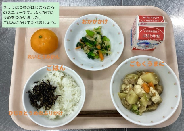 今日は入梅献立です。入梅とは、梅雨がはじまる時期を表す言葉で、