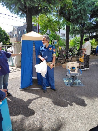 奥沢小学校避難所運営委員(部長、本部長、奥沢まちづくりセンター、玉川消防団、青少年委員、民生委員、PTA、学校評価委員会等)の皆さんが、本校の防災倉庫確認、緊急時のカギの確認、マンホールトイレの設置、応急給水栓の設置、資機材操作、炊き出し(アルファ米とカレー)等を行いました。