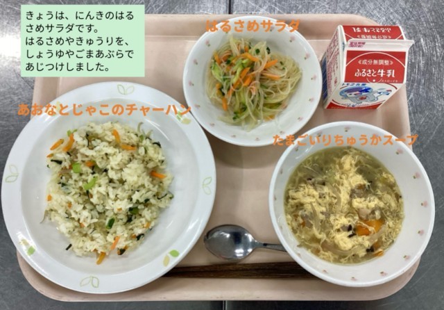 味つけをしました。春雨サラダはとても人気で、どのクラスもおかわりをしてよく食べていました。
