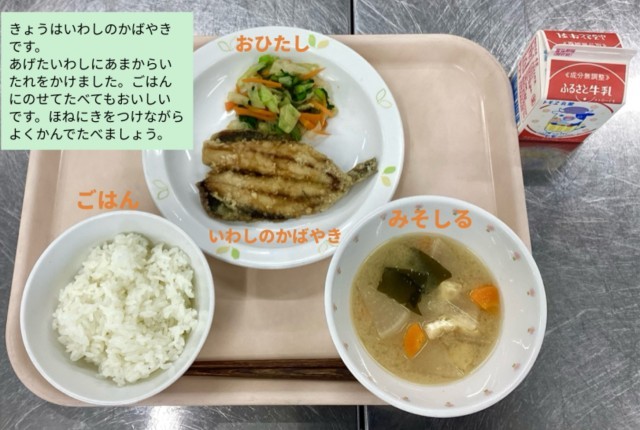 今日はいわしのかば焼きです。いわしに下味をつけてから油で揚げて、砂糖やしょうゆで作った