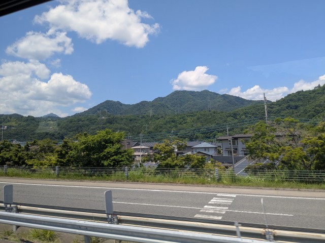 バスが進むにつれて、窓から見える景色も変わっていきます。ビルなどの建物が少なくなり、湖や山々などの自然が多くなってきているのを子どもたちも感じています。