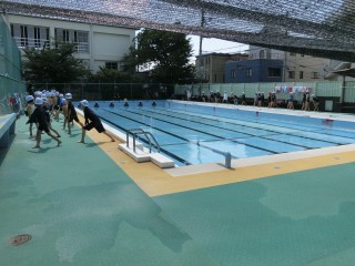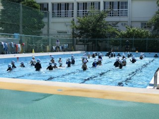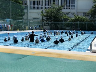 プールについて、安全面などの指導をしっかり行い、準備運動をして、シャワーを浴びて、いざプールへ。