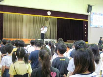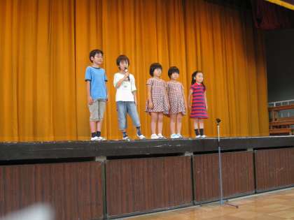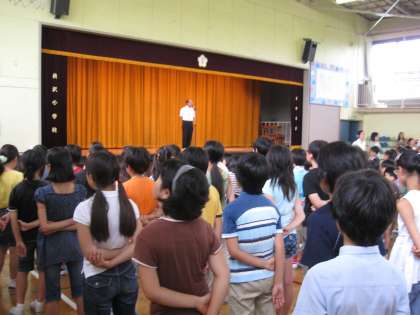 7月17日(金)3校時、体育館で平成21年度1学期の終業式がありました。校長先生から“できるがいっぱい”“元気がいっぱい”“笑顔がいっぱい”の子どもでいてほしいとのお話がありました。