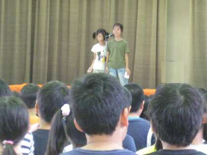 7月9日(木)、二日遅れの七夕集会を行いました。集会委員会の児童が中心になって、ひこ星とおりひめ星の話にまつわる三択クイズをやってくれました。最後に全問正解した人が立って、みんなから拍手をもらいました。