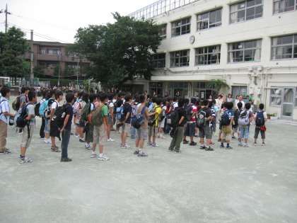 7月23日(木)午後4時過ぎ、日光から6年生と引率の先生方が元気に帰ってきました。少し雨まじりでしたが、校庭で帰校式を行いました。