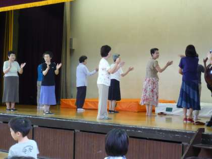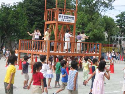 低学年の朝遊びの時間に第2回目の盆踊りの練習が行われました。先週教わった炭坑節を音楽にあわせて、やぐらを中心に踊りました。地域の皆様も何人もかけつけで下さり、本当に感謝しております。18日、19日の本番では、低学年の児童がたくさん参加し、輪の中心で元気よく踊ってくれることを願っています。
