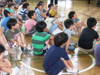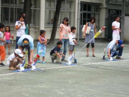 7月11日(土)午後、7月の体験楽校“ペットボトルロケットを作ってとばそう”を行いました。この“ペットボトルロケットを作ってとばそう”は、今年で3回目になりました。