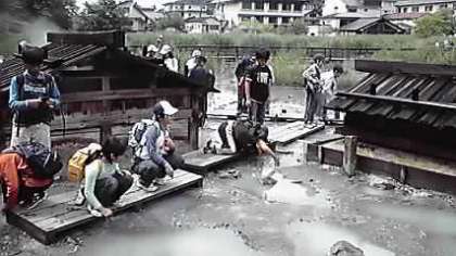 「湯元の源泉」は、温泉がふきだしています。手を入れると、案外熱いのです。