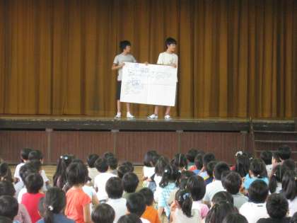 また、6月23日から3日間行われた緑の募金では約6000円の募金があったと、児童運営委員会の人から報告がありました。これは東京都の緑化や緑化の国際協力にあてられるとのことです。ご協力ありがとうございました。 -