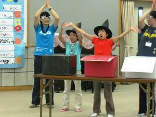 2日目は、雨だったので、ハイキングのかわりにサファリパークへ行きました。ライオンやゾウ、キリンなど、様々な動物を間近に見ることができました。夜は三つの学校が集まって、子ども会をしました。各学校が自己紹介をしながら出し物(奥小わかばの出し物は手品でした。)をしたり、「シート取りゲーム」をしたり、「崖の上のポニョ」を歌ったりして、交流を深めました。