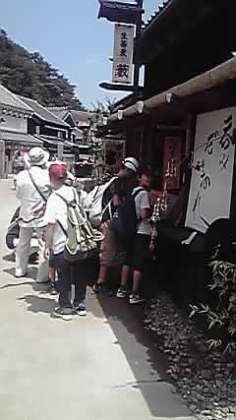 開園前に江戸村に到着。日差しが強く、バスの中で待つことにしました。開園時には、キャラクターのにゃんまげがみんなを迎えてくれました。忍者ショーなどのイベントや買い物を3時間余り楽しみました。江戸村の見学を終えて1時には帰校の途につきました。3日間で楽しい思い出をたくさんつくりました。
